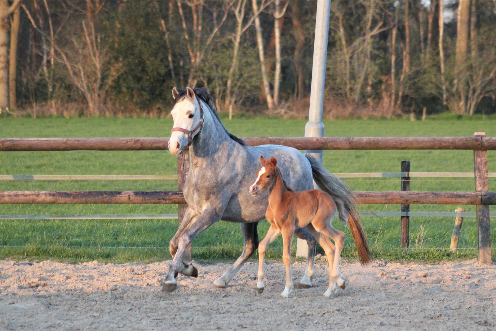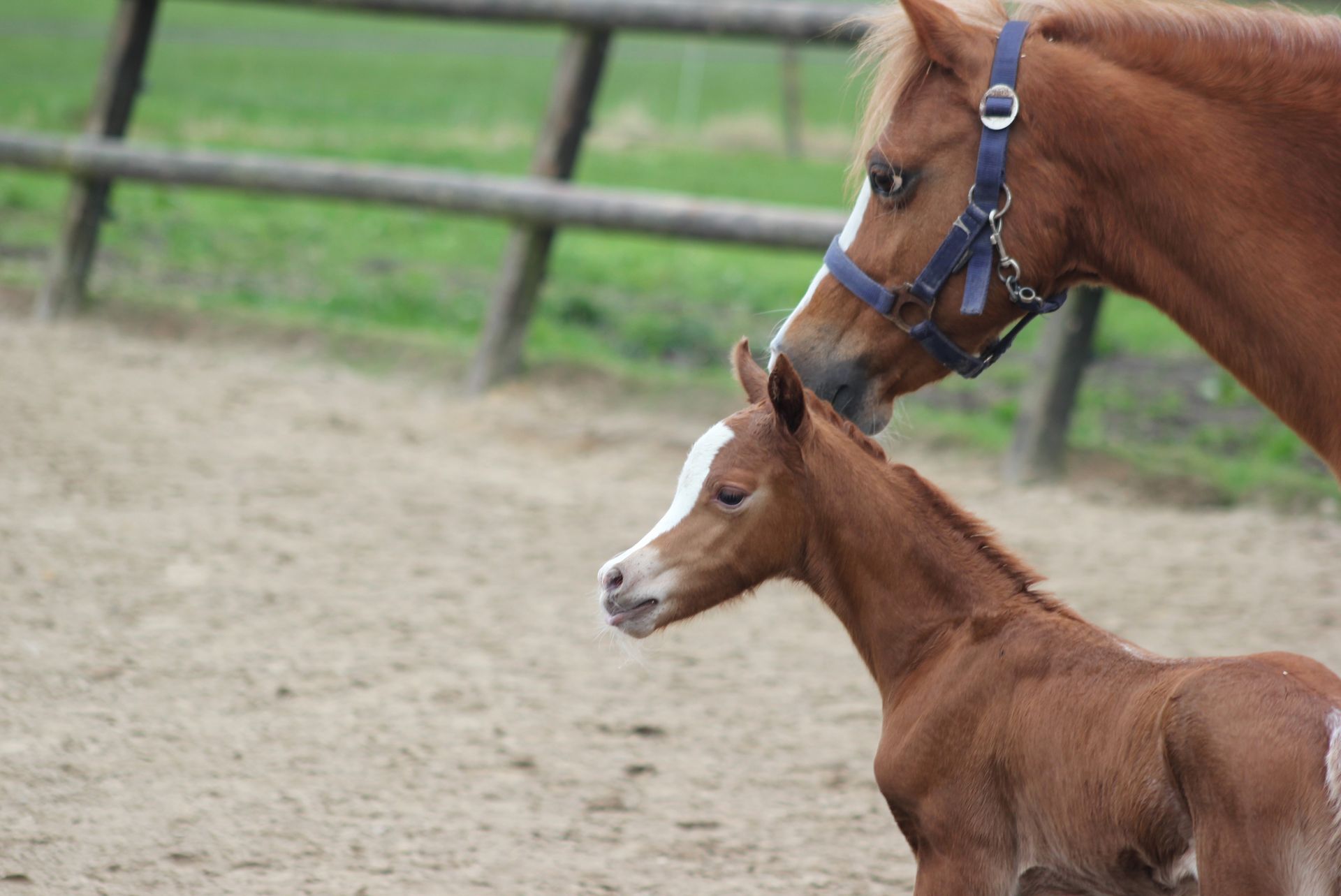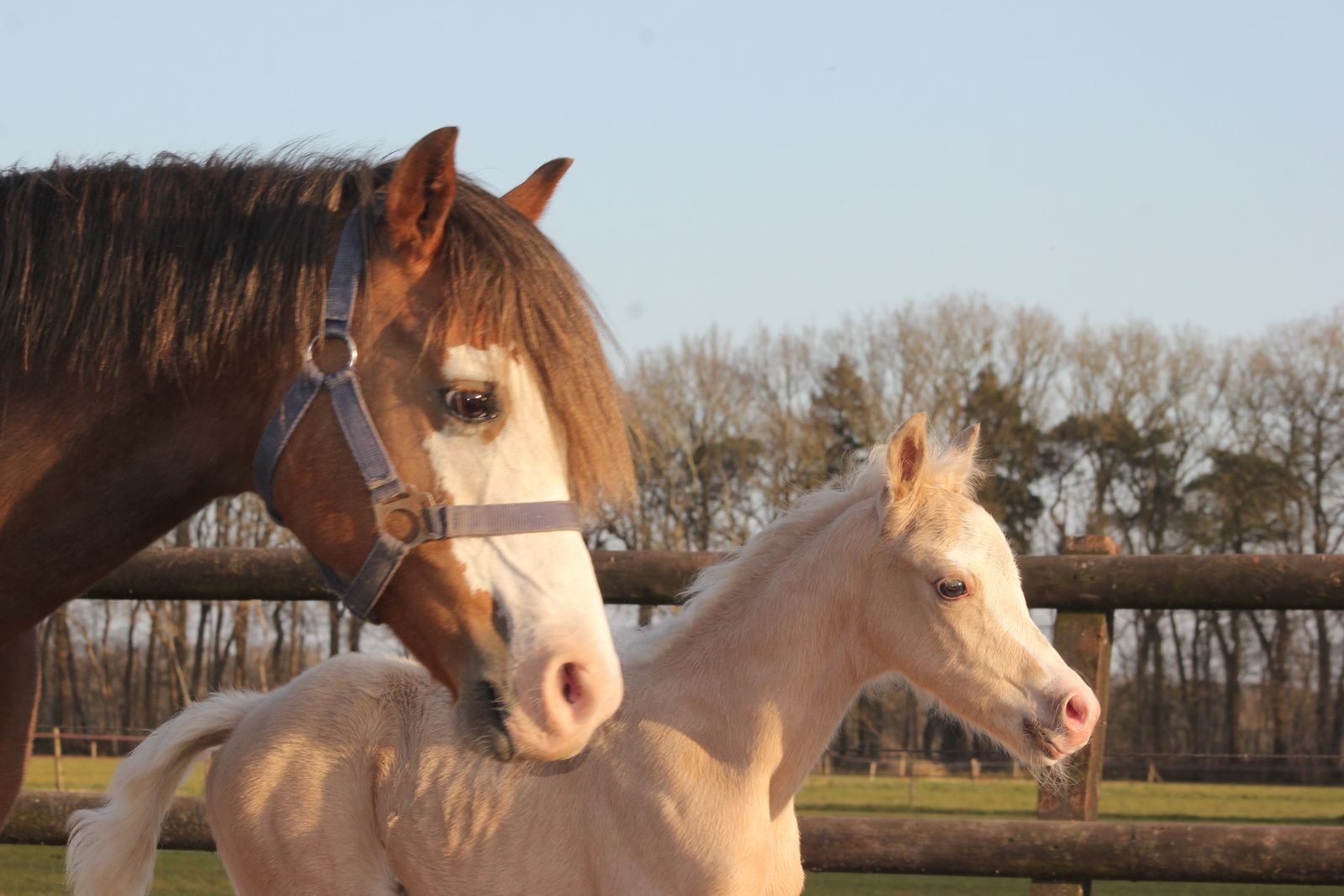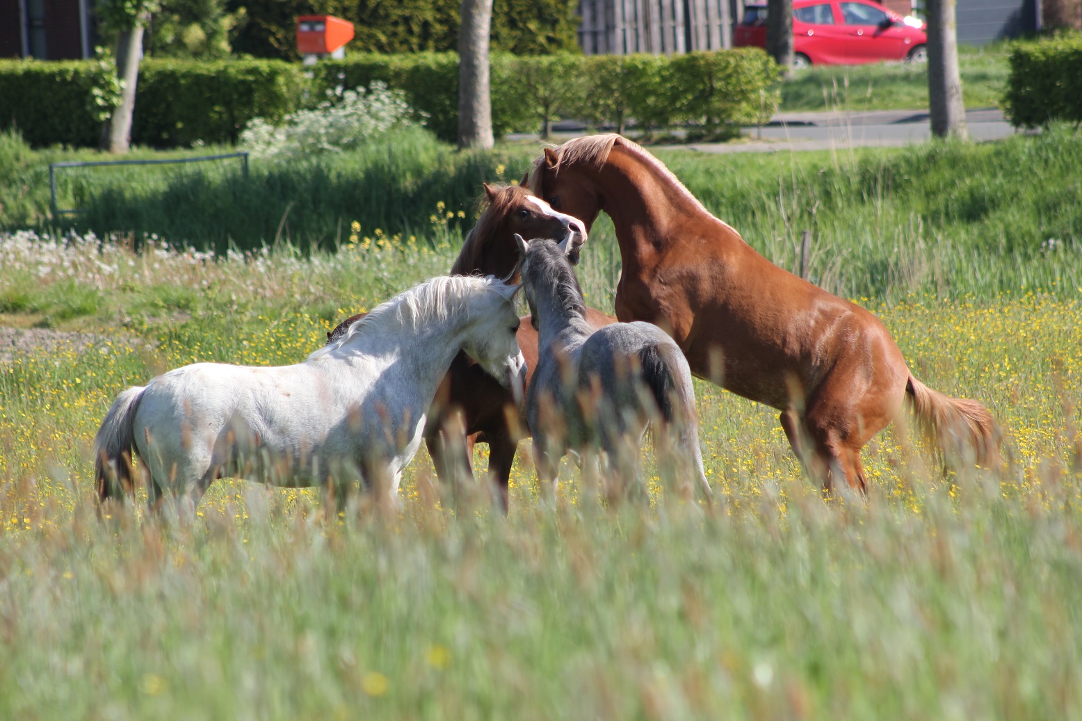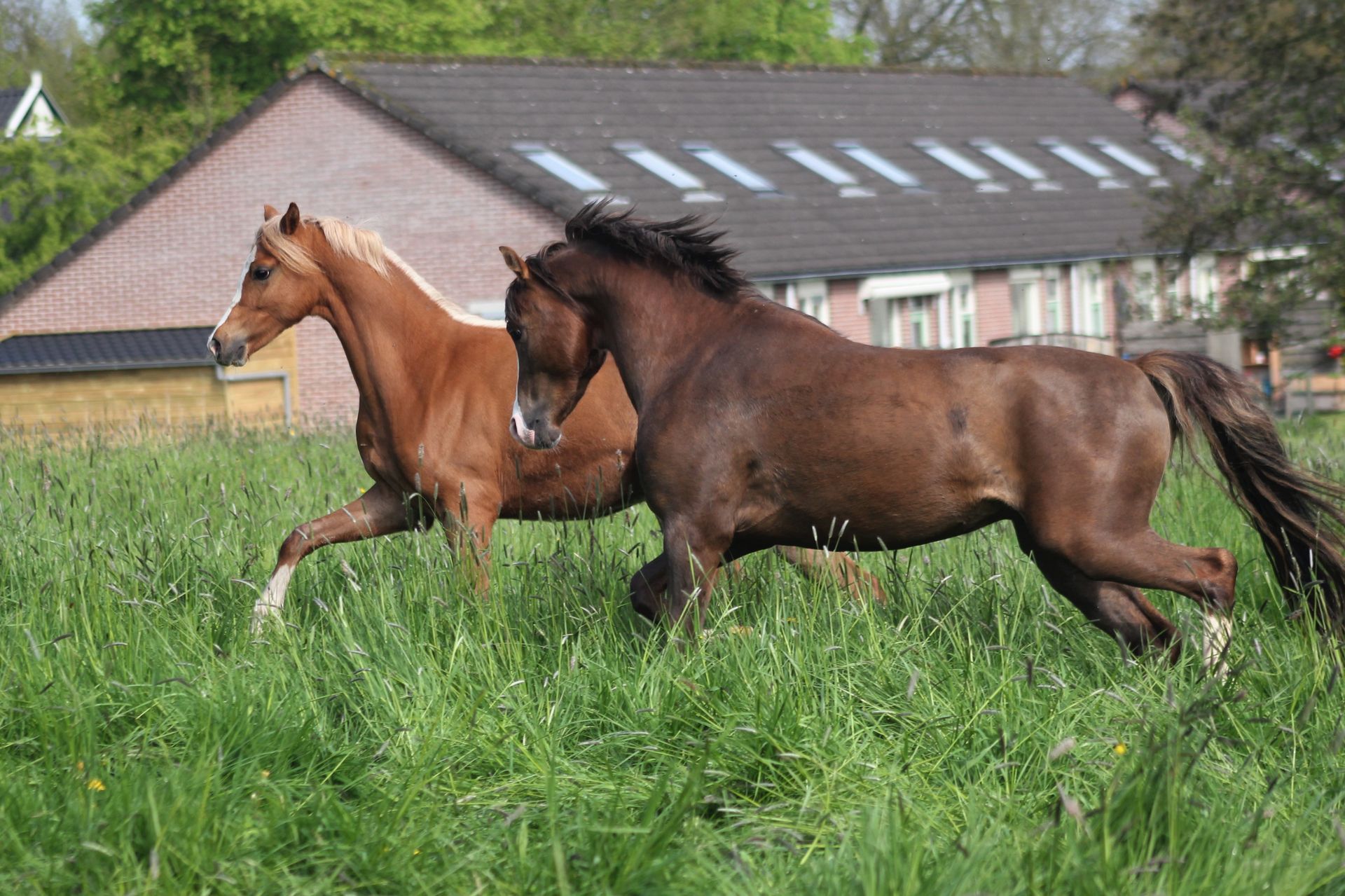 merrie met een jong veulentje bij in de wei komt. Maar het gaat eigenlijk altijd