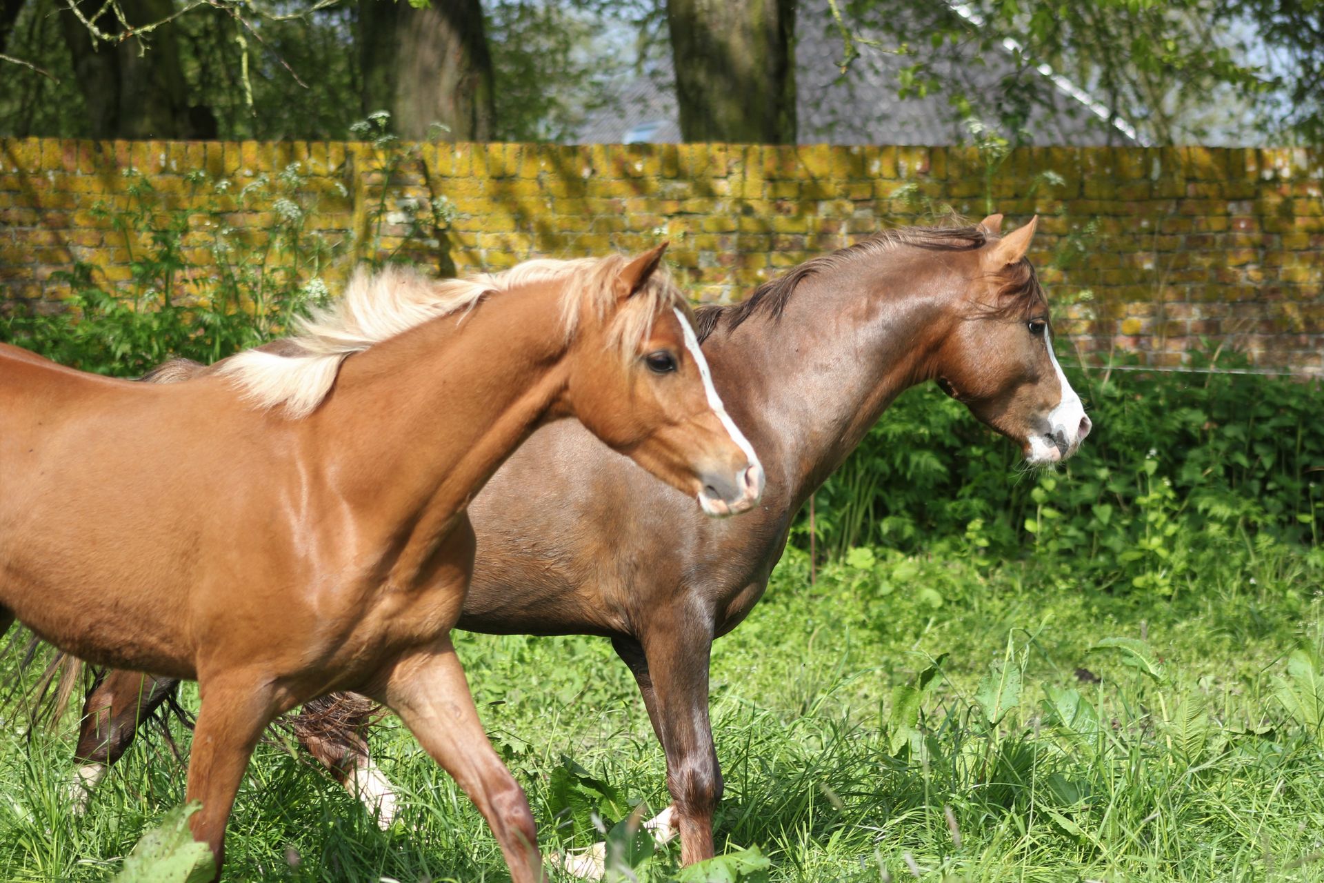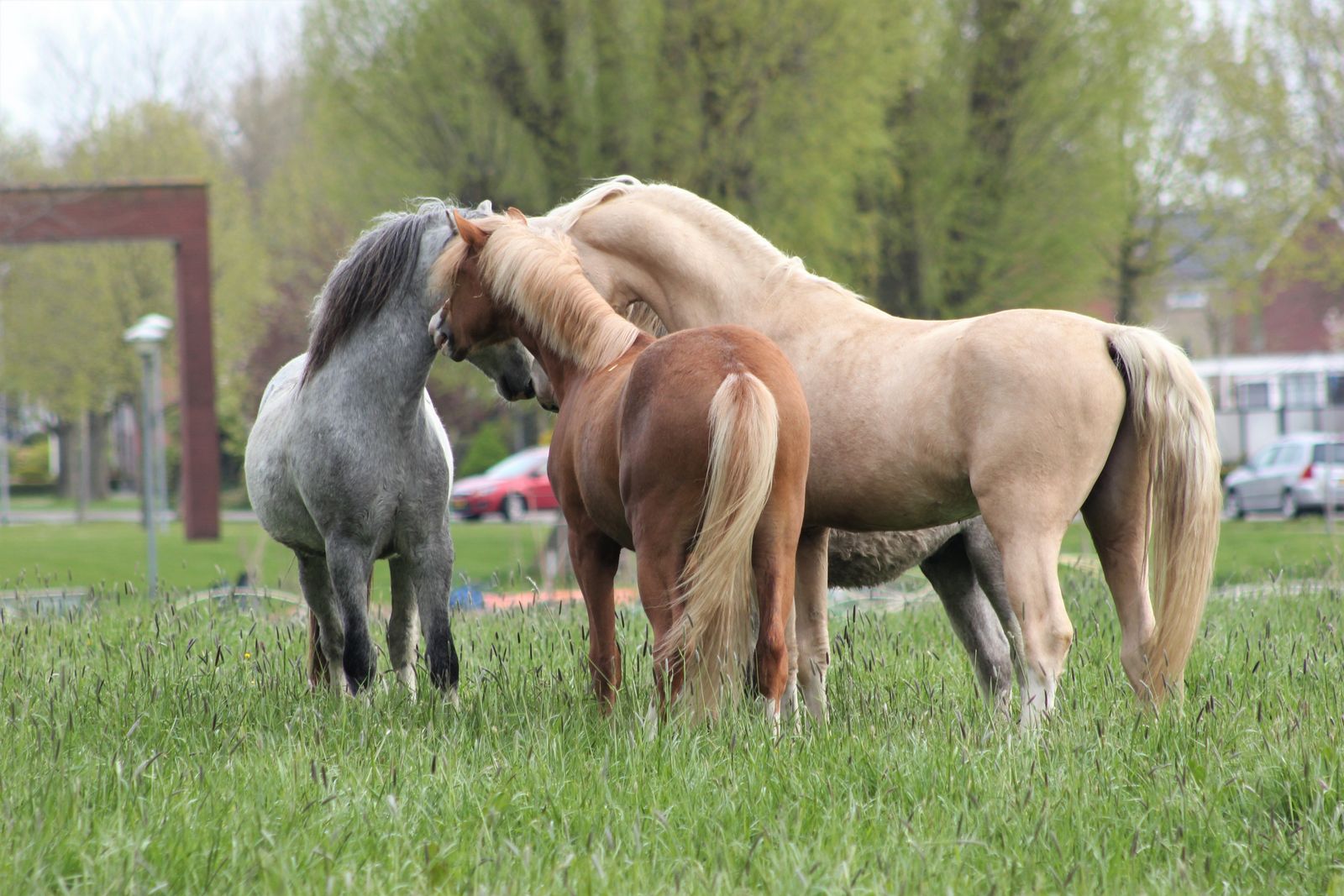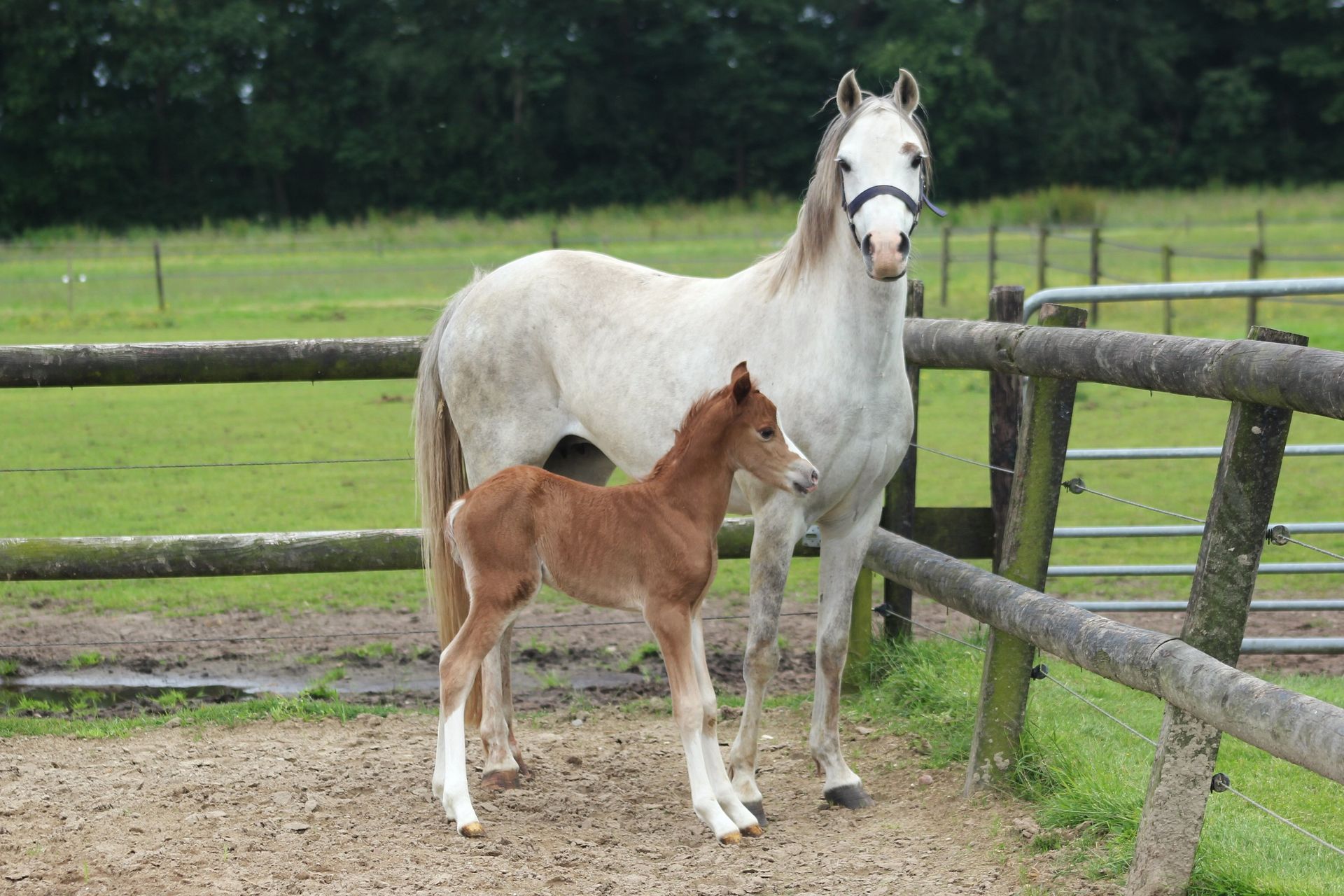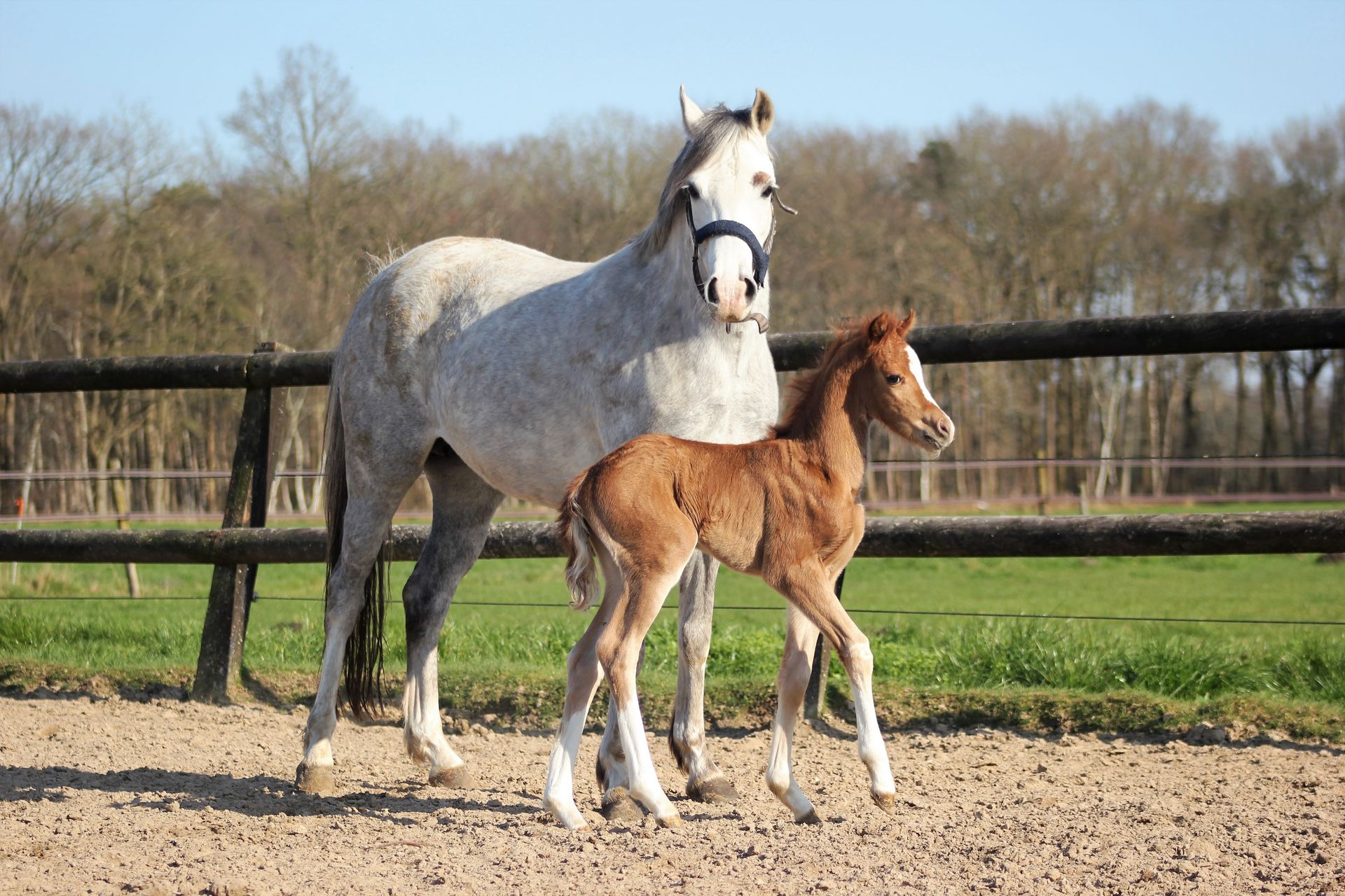 merrie met een jong veulentje bij in de wei komt. Maar het gaat eigenlijk altijd