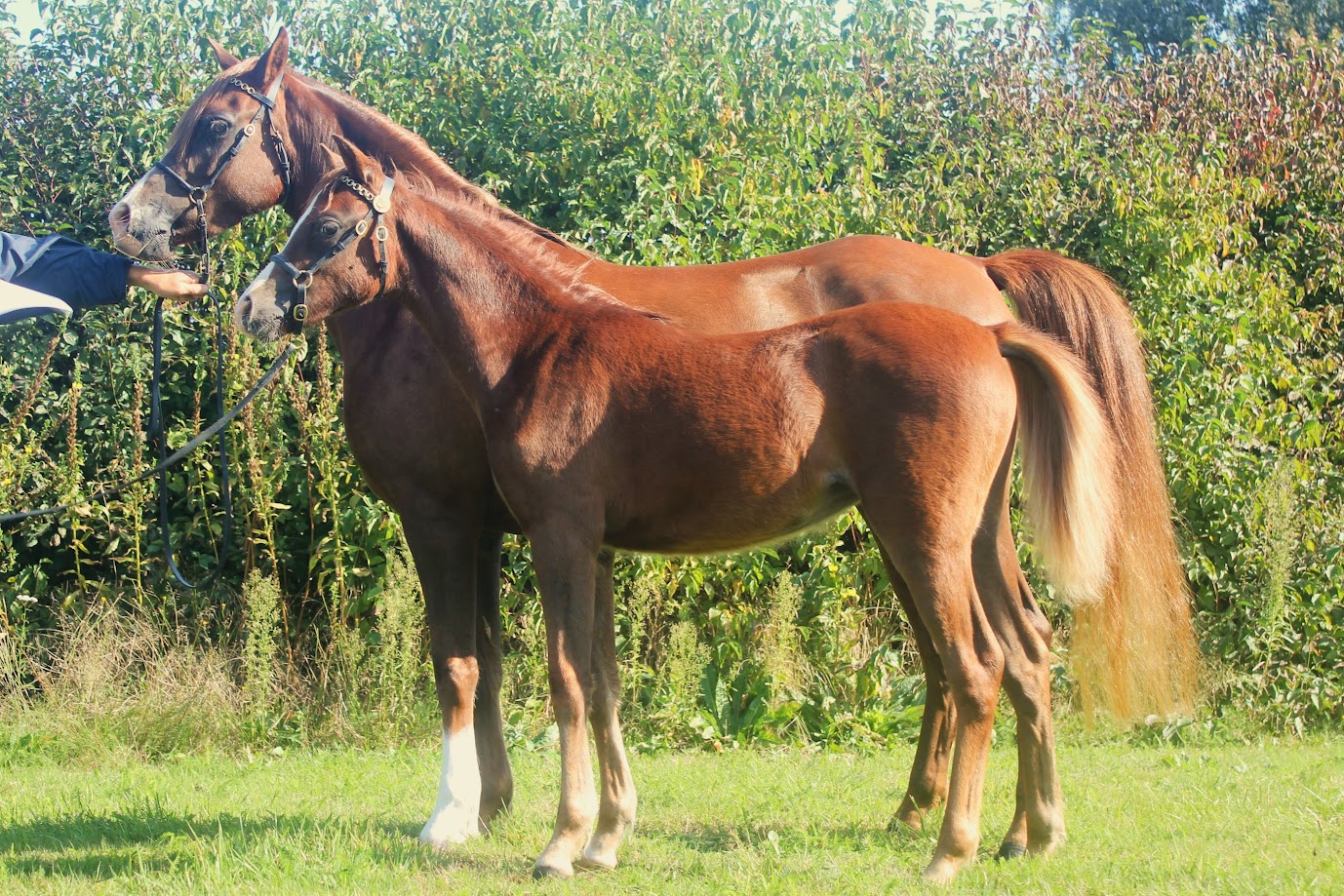 Beide hengstjes hebben als vader Stougjeshoeve Armani. Allebei zijn voskleurig met vier witte benen en een bles. Beiden hebben dezelfde mooie zelfhouding en veel souplesse in de beweging. We zijn benieuwd hoe zij zich verder gaan ontwikkelen.