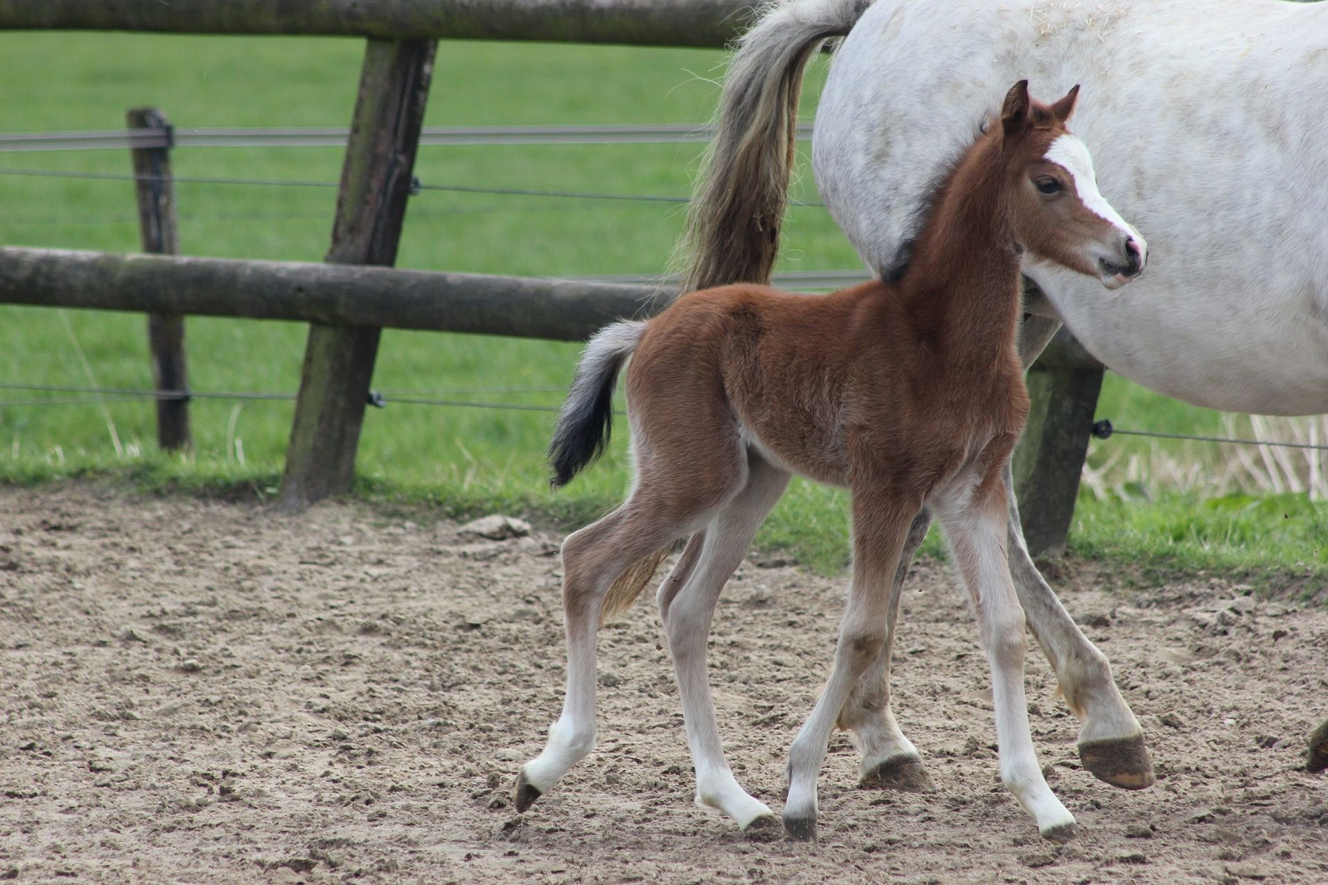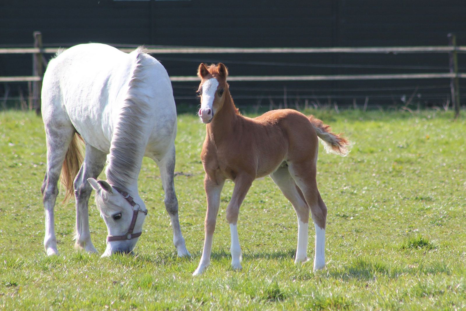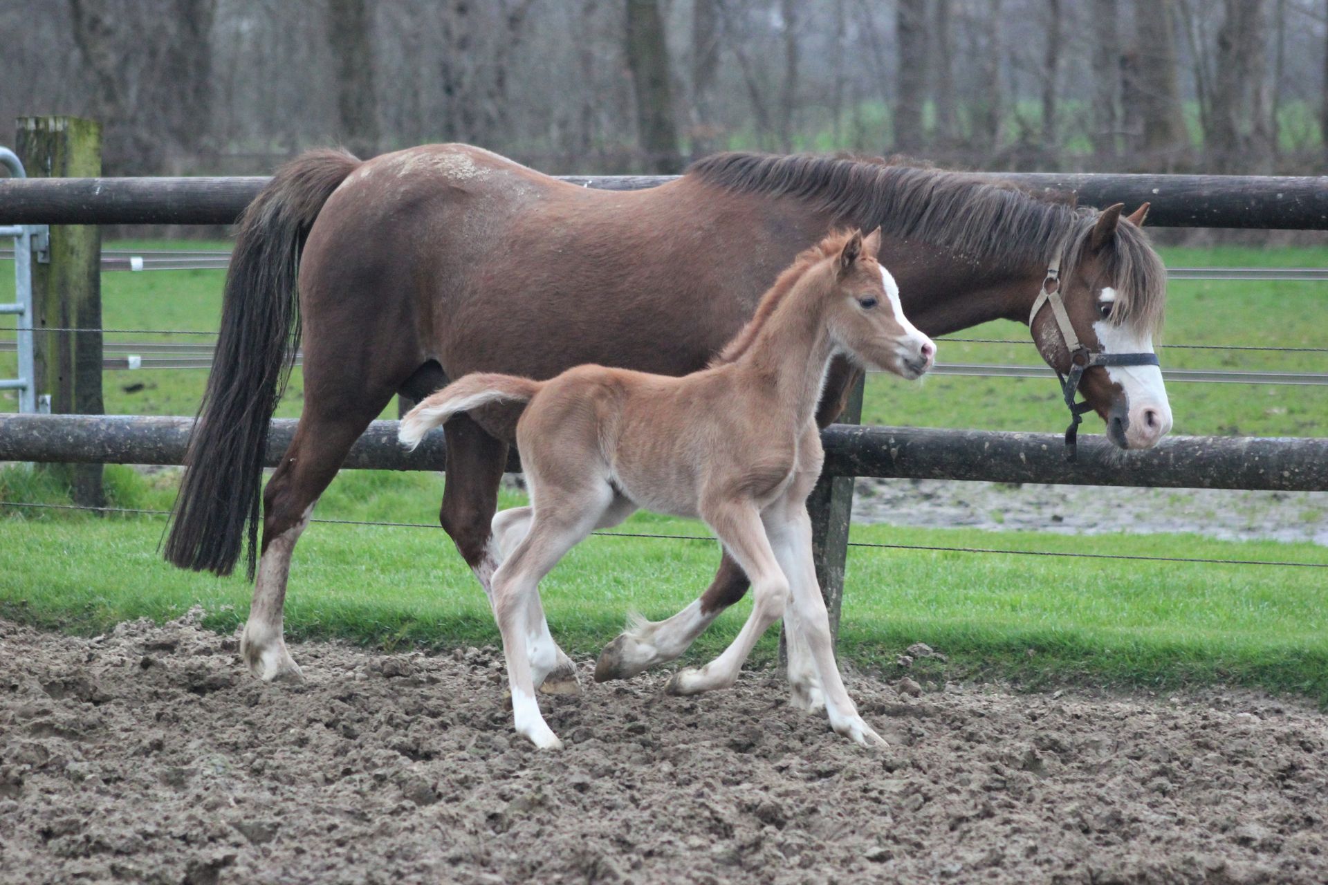 Op de valreep van maart heeft Weltevreden’s Cherry Blossom (keur) een merrieveulen gekregen. Lakeway’s Cher-Lynn is het derde veulen op stal Lakeway en daarmee ook het derde merrieveulen. Net als de andere veulens heeft ze als vader Wildzang’s Lustre Madog (pref). En net als haar moeder heeft Cher-Lynn bijzondere aftekeningen aan het hoofd. De ene kant keurig strak en de andere kant uit de losse pols. Daarmee is ze een opvallende verschijning.