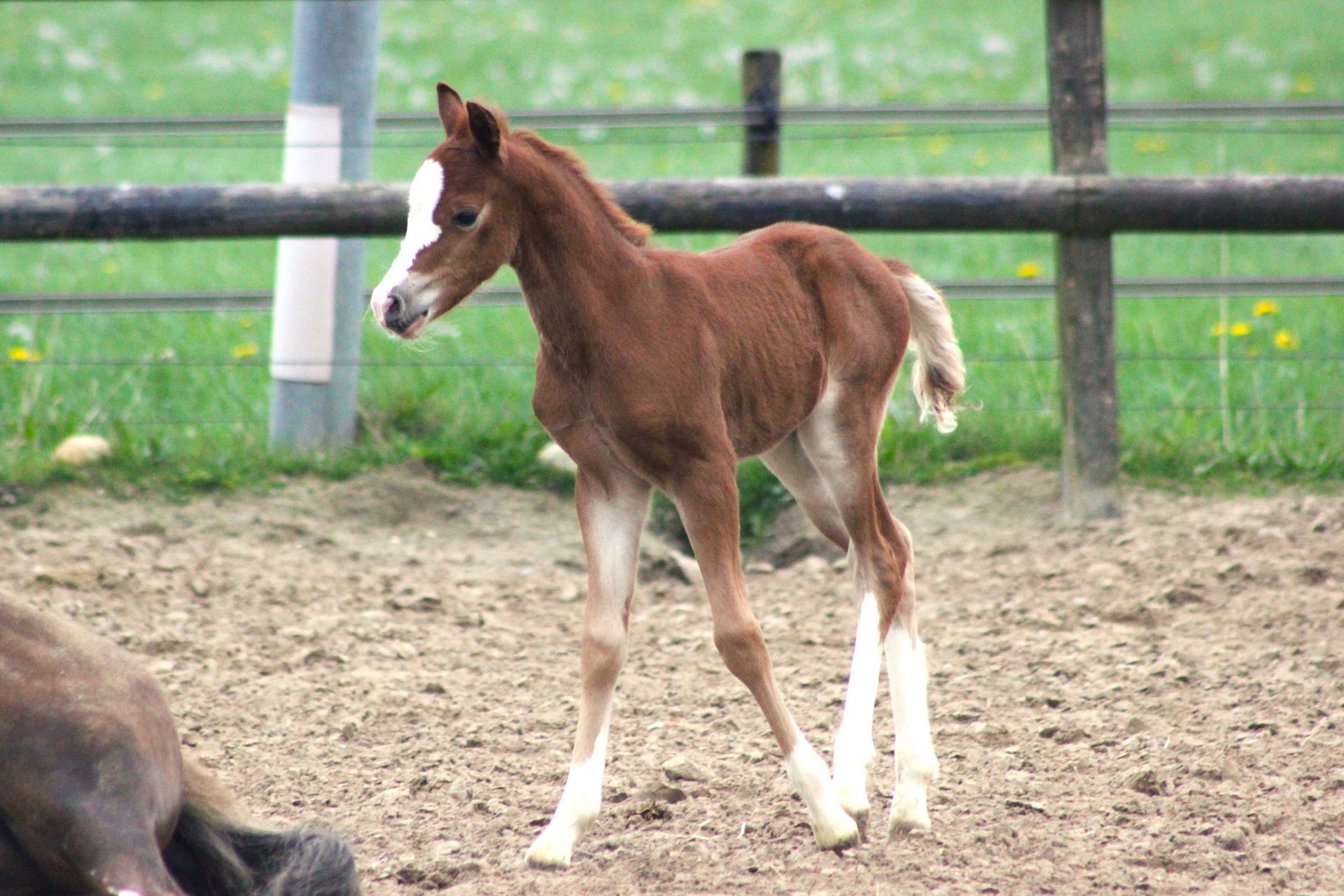Inmiddels zijn veulens nummer twee en drie ook geboren. Onze 18 jarige Lakeway’s Charmayne (keur, elite) heeft op 14 maart , 12 dagen binnendoor, haar 14e veulen gekregen. Een mooi chique vosbles merrieveulen met een mooie zelfhouding. Venicia heeft als vader Wildzang’s Lustre Madog (pref).
