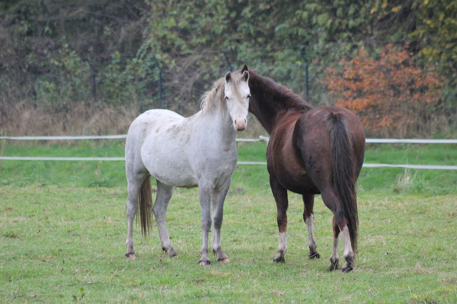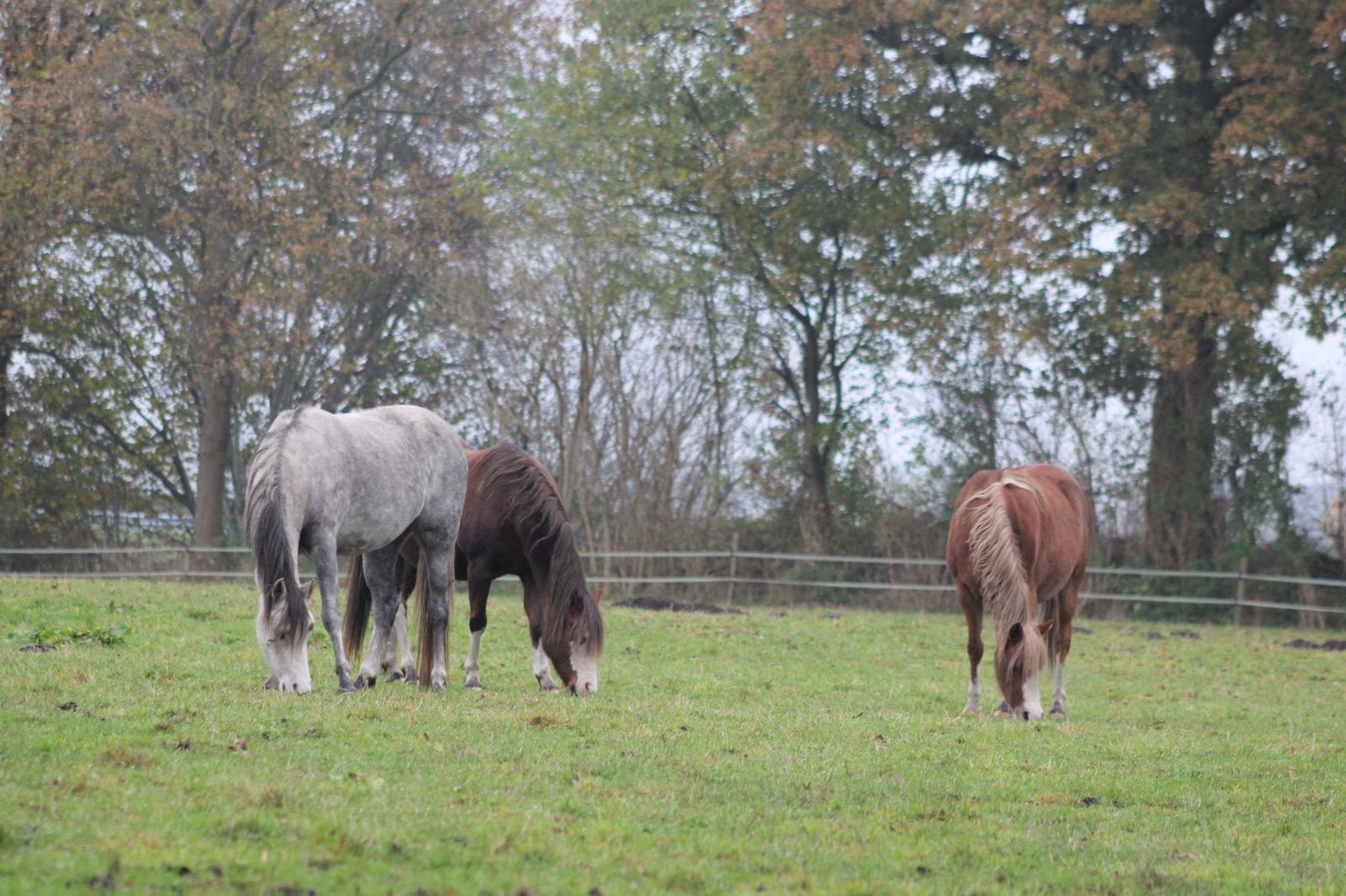 ’s Morgens gaan de paarden samen met de oudste Welshjes naar buiten. Samen zijn ze inmiddels 125 jaar! Onze eigen gefokte KWPN-er Kadi is 30 jaar, haar dochter Wianti 19 jaar. Onze oudste Welsh is Tessa. Nou ja, eigenlijk is ze van Niels en