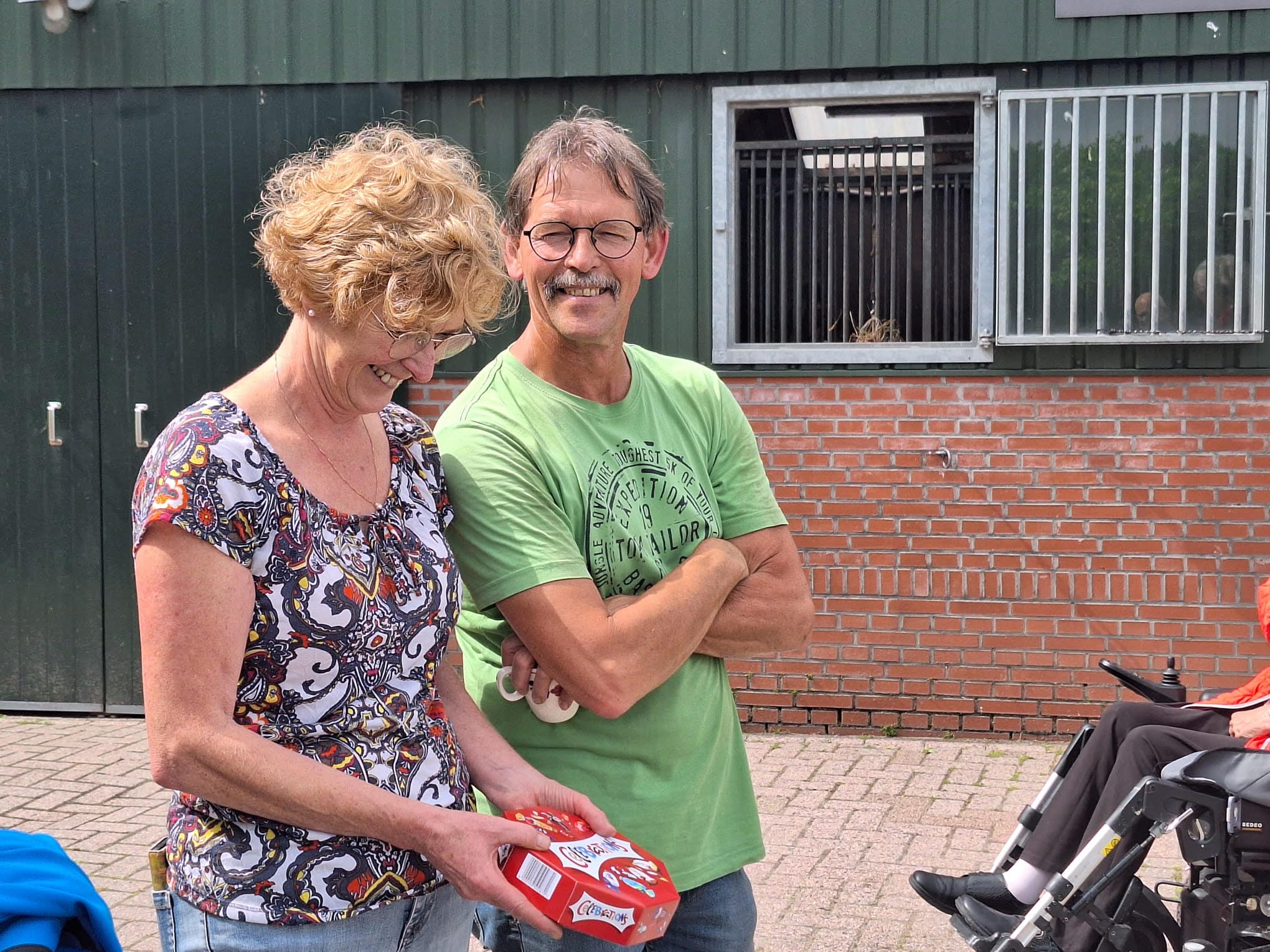 Net als voorgaande jaren kwamen ook dit jaar cliënten van de zorginstelling waar Wilma werkzaam is als verpleegkundige bij ons op bezoek. Op vrijdag 5 juli kwam zowel ’s morgens als ‘s middags een groep cliënten. De één kwam op de scootmobiel, een ander met haar dochter op de duofiets en de anderen cliënten met de bus van de zorgorganisatie.
