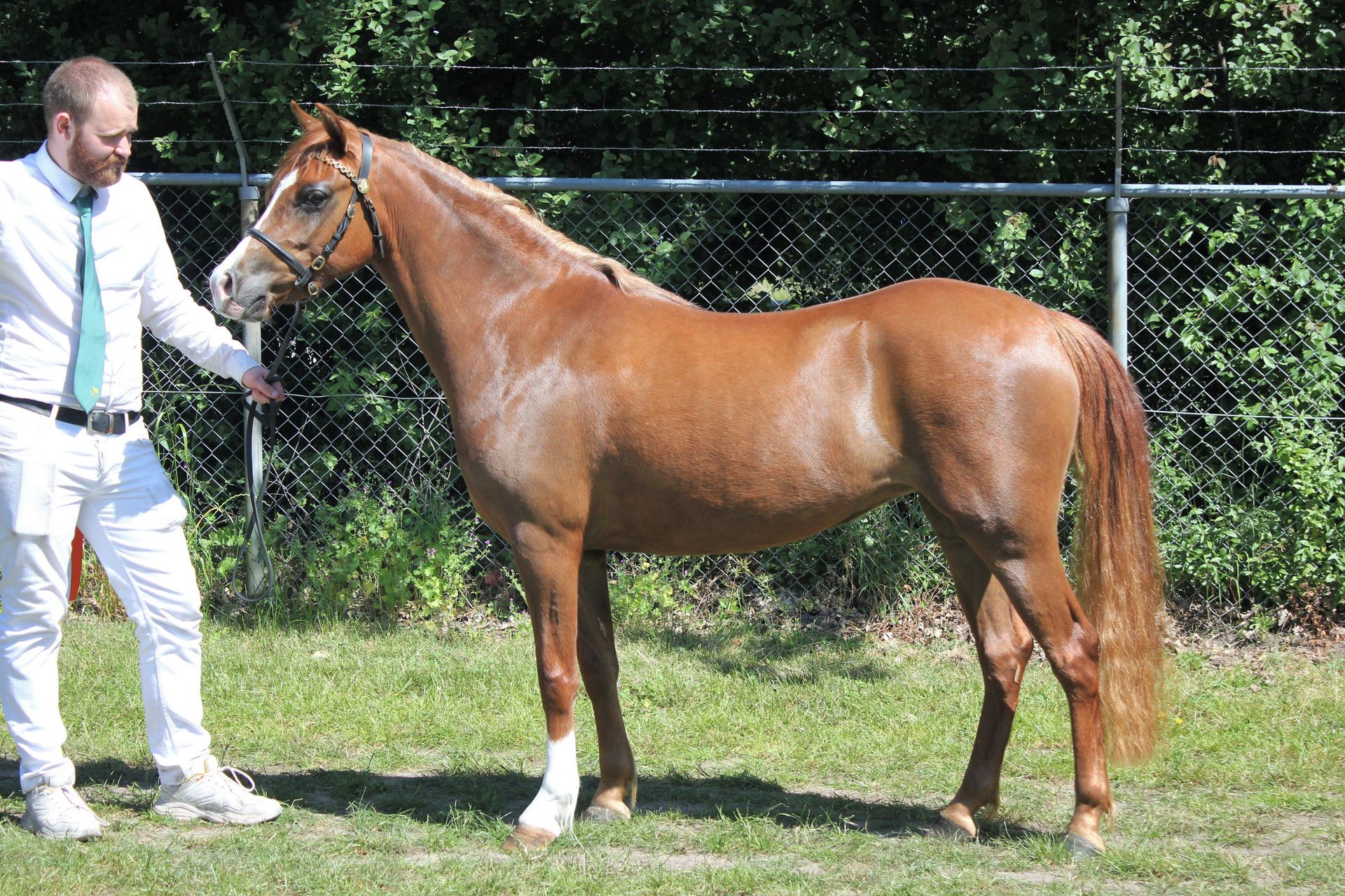 Daarin tegen liet Rafaël zich bij de jongere hengstveulens geboren na 1 april uitstekend zien. Mag zich nog wat meer ontwikkelen, maar beweegt goed en heeft heel veel ras. Dit werd dan ook beloond met een eerste premie. Zowel Avanti als Rafaël hebben als vader Wildzang’s Lustre Madog.