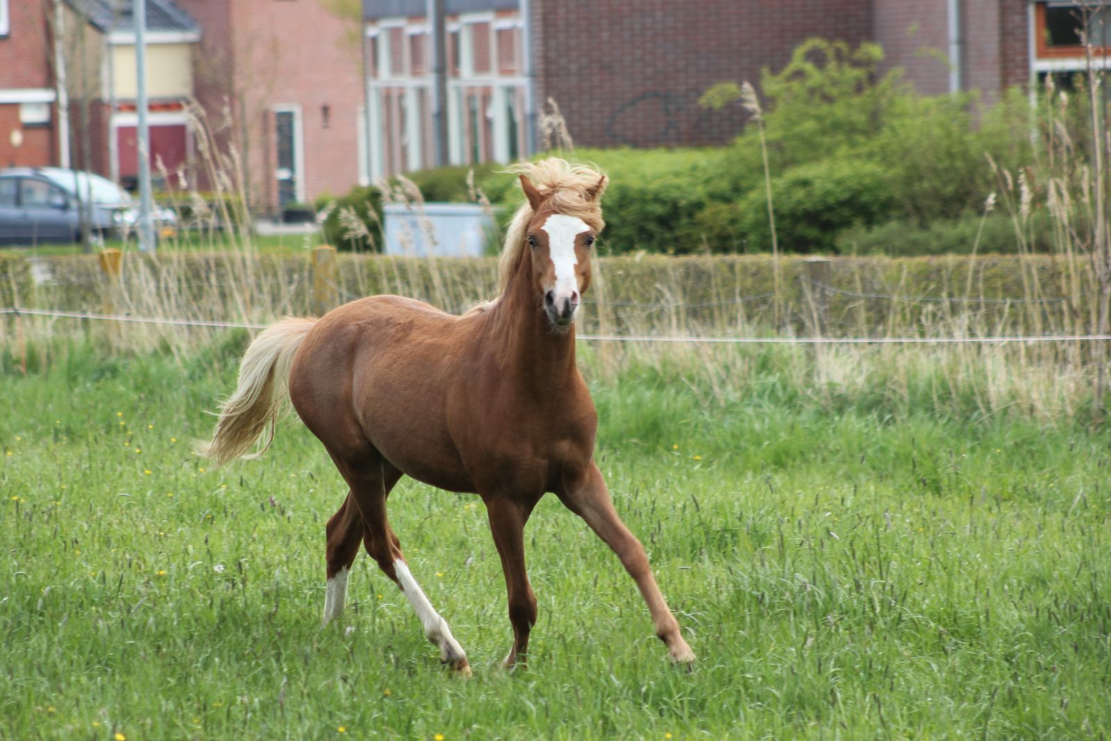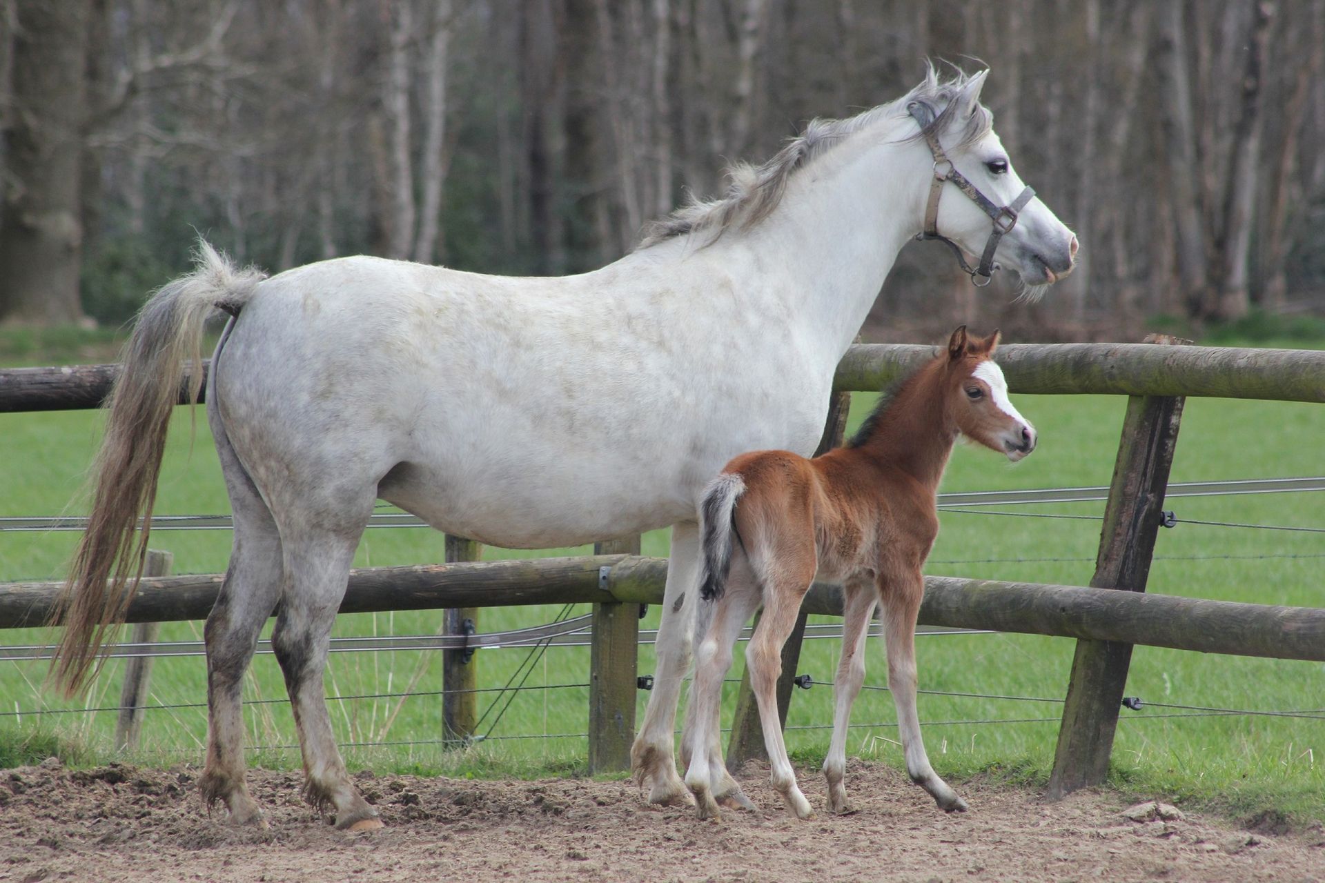 merrie met een jong veulentje bij in de wei komt. Maar het gaat eigenlijk altijd