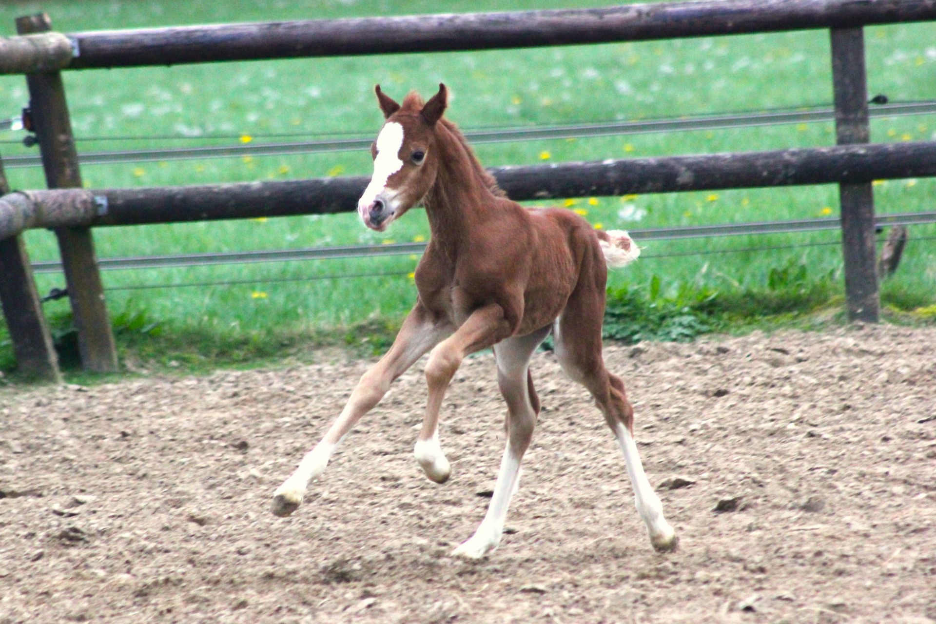 Op de valreep van maart heeft Weltevreden’s Cherry Blossom (keur) een merrieveulen gekregen. Lakeway’s Cher-Lynn is het derde veulen op stal Lakeway en daarmee ook het derde merrieveulen. Net als de andere veulens heeft ze als vader Wildzang’s Lustre Madog (pref). En net als haar moeder heeft Cher-Lynn bijzondere aftekeningen aan het hoofd. De ene kant keurig strak en de andere kant uit de losse pols. Daarmee is ze een opvallende verschijning.