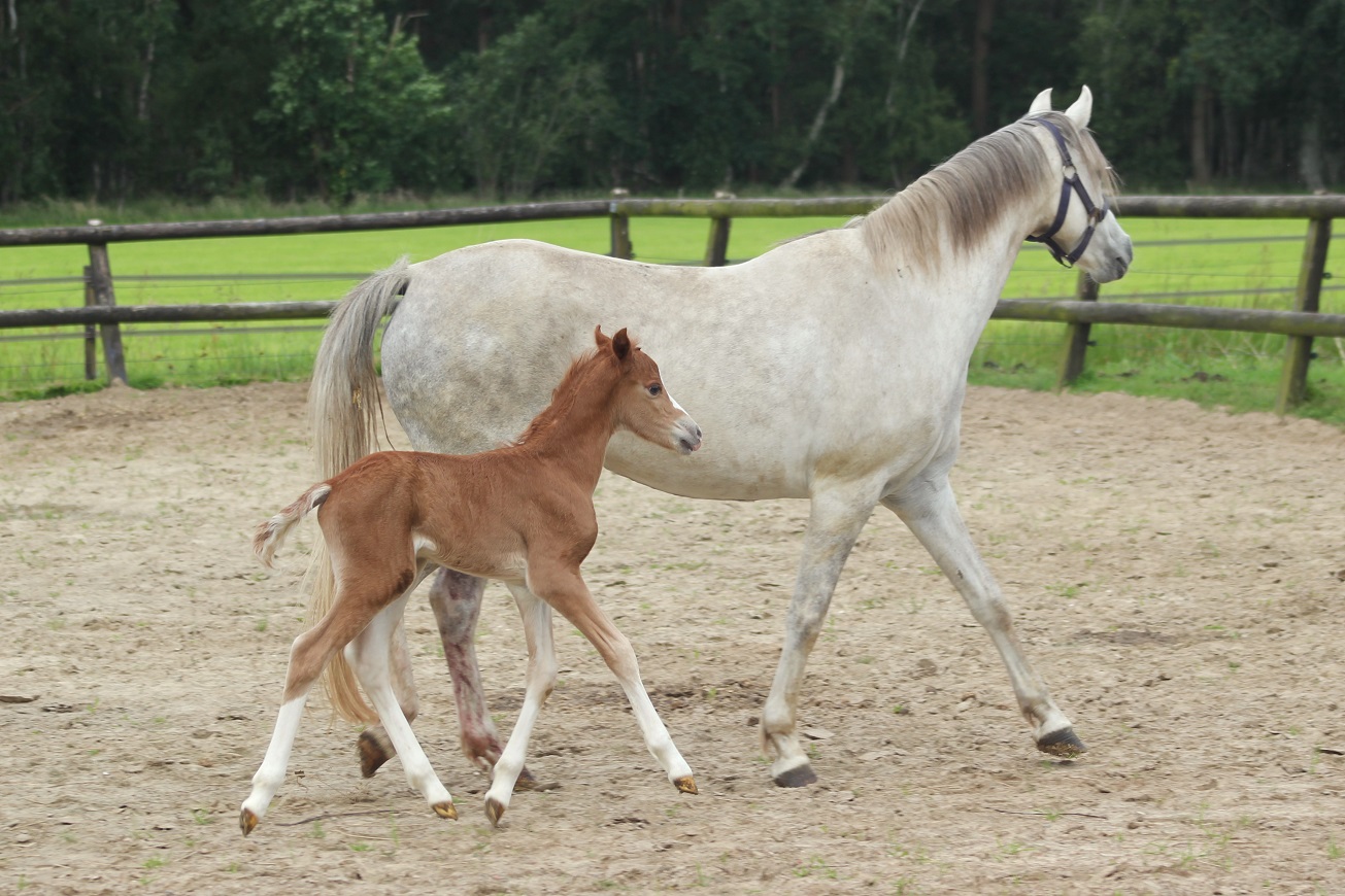 Beide hengstjes hebben als vader Stougjeshoeve Armani. Allebei zijn voskleurig met vier witte benen en een bles. Beiden hebben dezelfde mooie zelfhouding en veel souplesse in de beweging. We zijn benieuwd hoe zij zich verder gaan ontwikkelen.