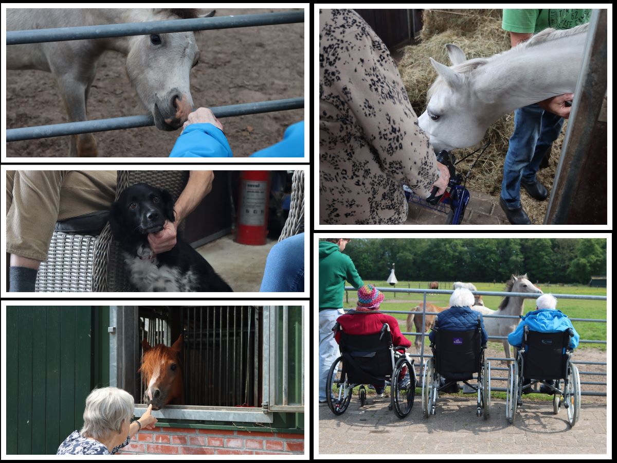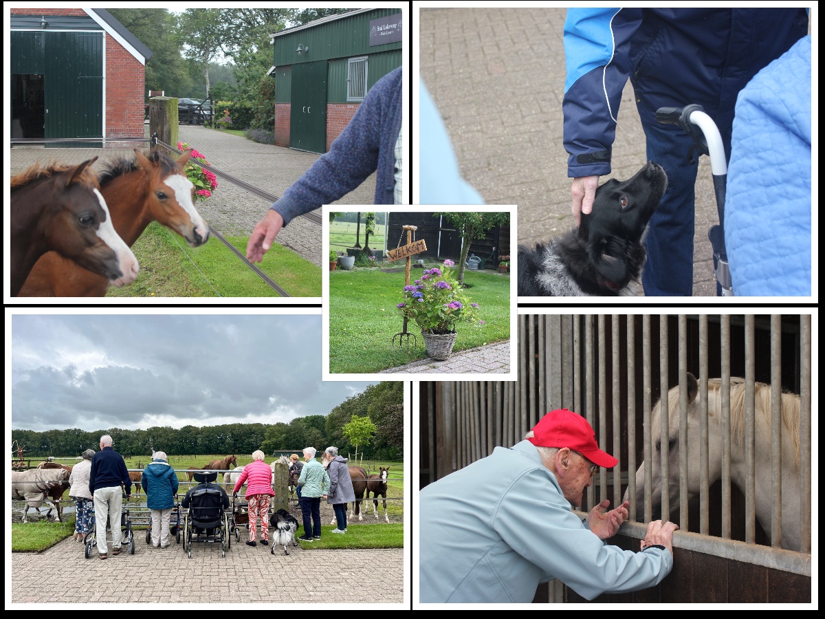 Net als voorgaande jaren hebben we weer stalbezoek gehad van de cliënten en hun familie van het zorgcentrum waar Wilma werkzaam is. Dit keer vier dagdelen om zoveel mogelijk cliënten de gelegenheid te geven om mee te gaan. Even in een andere omgeving met pony’s, veulens, kippen en de tuin die volop in bloei staat. En niet te vergeten onze hond Jill.